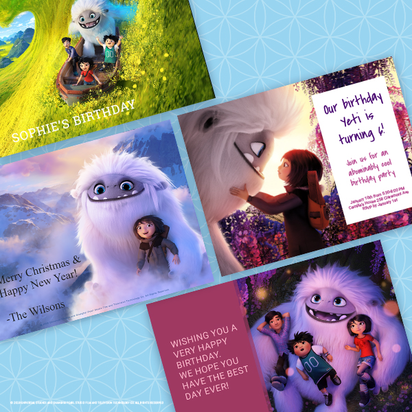 What better way to prepare for an ABOMINABLE party than with customizable ABOMINABLE eCards to share your birthday wishes to your little Yeti? Then, let the excitement begin with ABOMINABLE-themed animated invitations. Put Everest front and center, or have him side-by-side with a photo of the birthday boy or girl. You can also change the text and easily enter details about the party. With these ABOMINABLE birthday templates, the choice is yours.