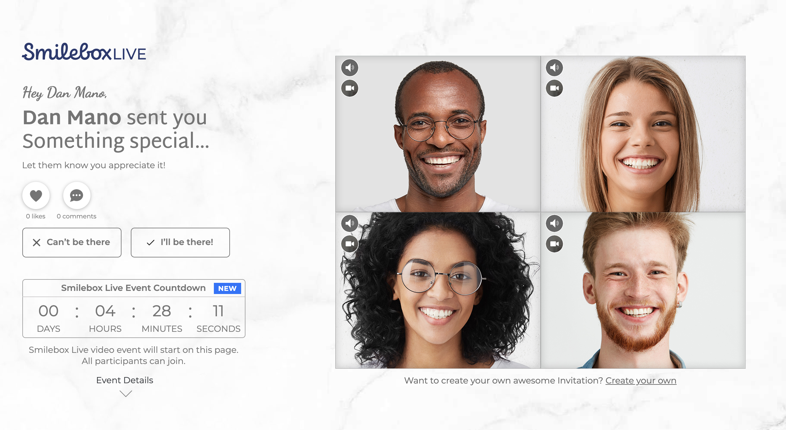 There’s nothing in this world mom wants to see more than you, so set up a virtual event that celebrates her with Smilebox LIVE. Since there is no limit to the number of participants in a Smilebox LIVE event you can include siblings and other family members – turn it into a party!